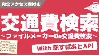 FileMakerで動く駅すぱあとAPIと連携して運賃を検索できる、交通費検索.fmp12から他の任意のファイルのスクリプトへ運賃の検索結果を送信する方法を紹介しています。